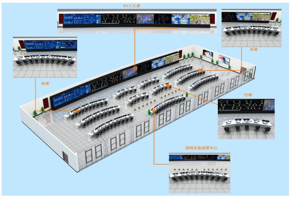 系统基于城轨运营现场的实际作业场景和培训需求,构建了行车调度、环控调度、电力调度、信息调度维修调度、CCTV等数字孪生仿真模型,是结合实际运营线路组建的集信号、通信、供电、环控等仿真模型于体的调度指挥培训系统。为解决当前城轨运营中调度各专业单工种独立培训以及与多工种协作培训的痛点问题,系统采用分布式协同仿真及虚拟现实仿真技术实现了列车群、车网耦合、电环联控、行环联控以及行车调度、电力调度、环控调度联锁逻辑控制等仿真,可以实现地铁运营方案模拟演练、标准作业与故障非正常作业场景培训、应急预案演练与比选、事故原因分析等功能,并能对整个教学培训过程进行考核评价与培训效果评估。