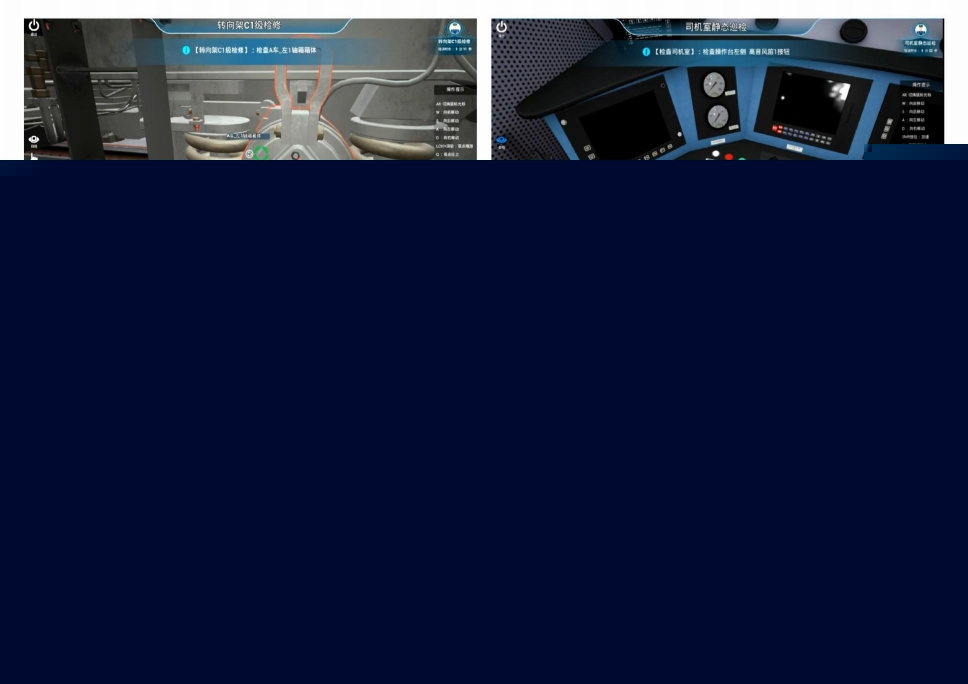 系统采用业界最先进的3D渲染引擎配合虚拟现实技术,构建一个集视、听、触摸多种感知为一体的虚拟仿真环境。学员能够在VR模式与桌面模式的虚拟环境、MR模式的虚实融合环境中进行机车结构认知、故障处置及标准作业流程的培训,满足机车副司机、检修工的培训需求,解决了真车培训方式单一、故障难以复现、设备认知结构不全、培训成本高、安全性低等痛点问题。